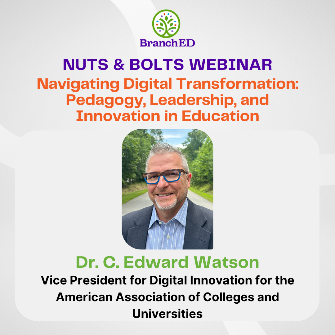 In an era where digital tools are reshaping education, Dr. C. Edward Watson, Vice President for Digital Innovation at the American Association of Colleges and Universities (AAC&U), will explore how technological innovations can drive meaningful change in teaching and learning. With extensive experience leading initiatives on artificial intelligence, digital equity, and open learning, Dr. Watson will discuss strategies for integrating AI into pedagogy, fostering inclusive learning environments, and developing leadership skills essential for navigating digital transformation. Drawing from his recent work, Teaching with AI: A Practical Guide to a New Era of Human Learning, this webinar offers insights into harnessing technology to enhance educational practices and outcomes. Join us to gain a deeper understanding of how to lead and innovate in the evolving educational landscape.